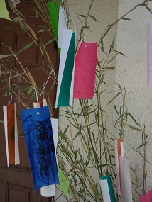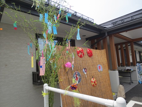 短冊には利用者さんそれぞれの願い事を書いて好みの場所に吊るしました。