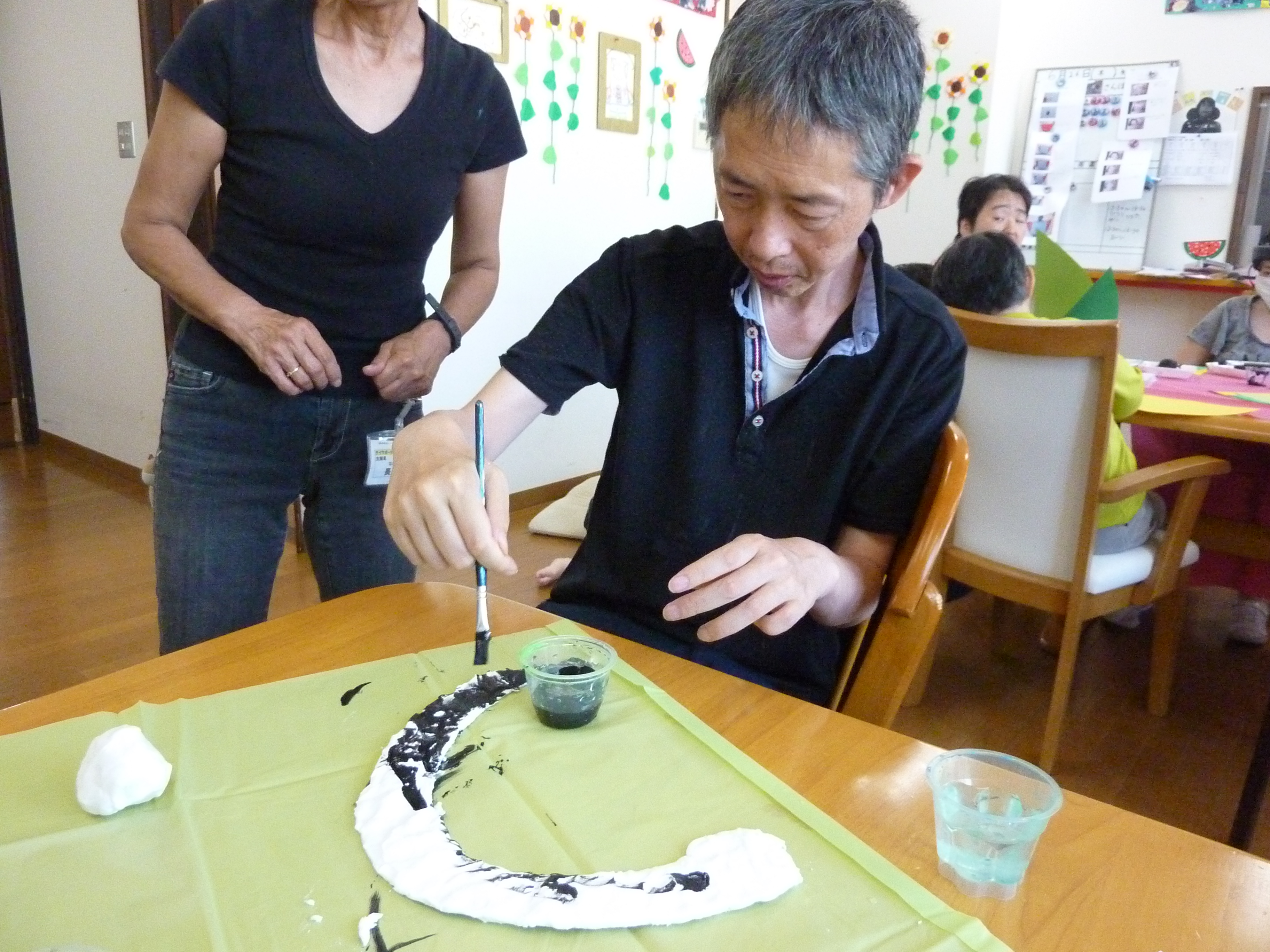 1センチに画用紙を切るのもなかなか大変な作業ではありますが利用者さんの巻くスピードが速く「紙もうないよ」「あとちょっとでなくなるよ」と声をかけてもらいながら進めてきました。