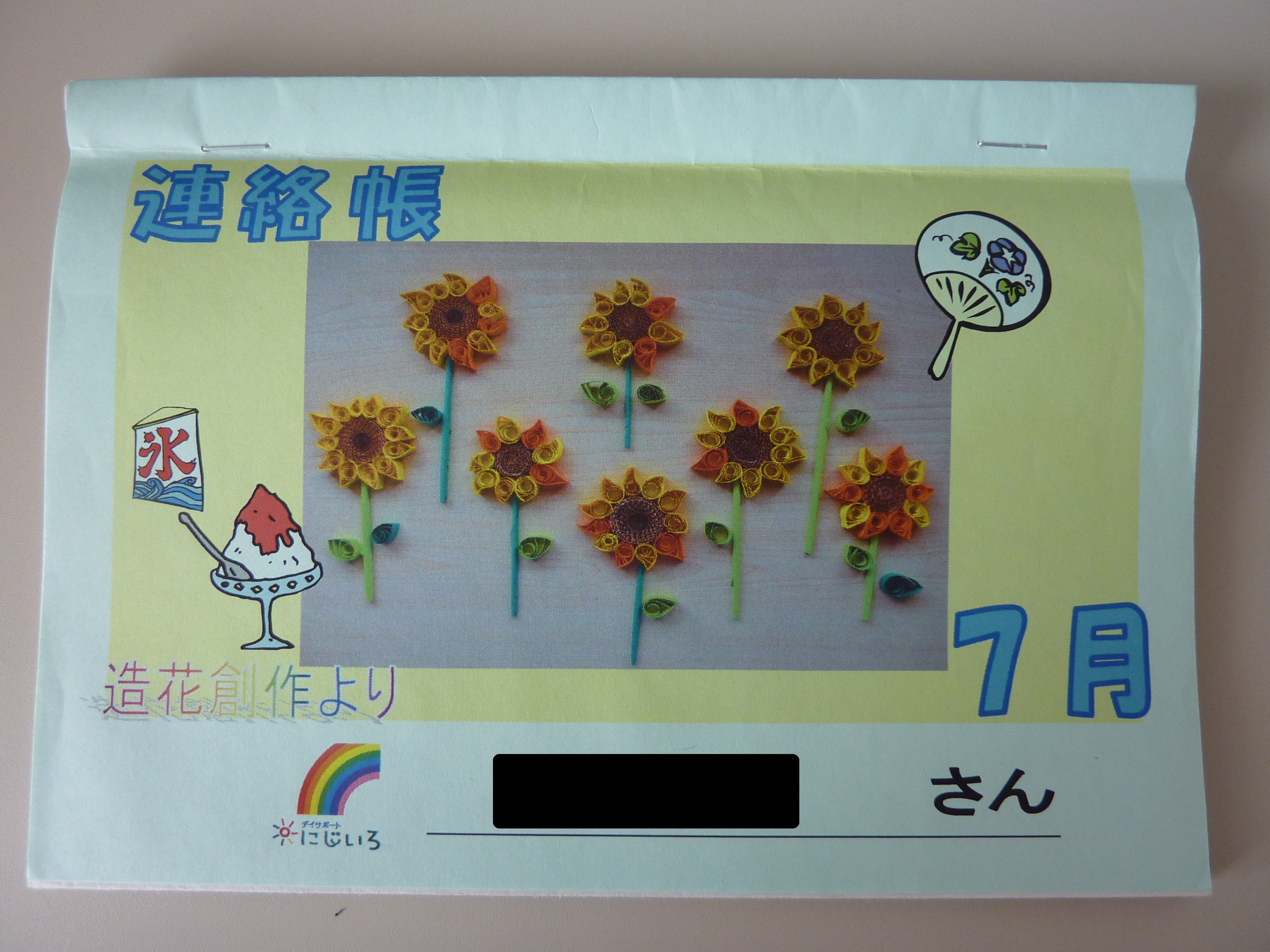 たくさん作っていただいた造花は7月連絡帳の表紙にもなっています。